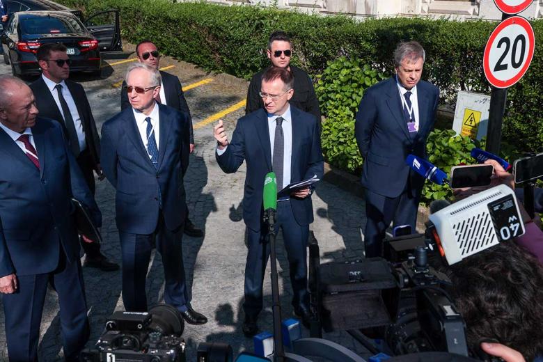 Помощник президента РФ, председатель Российского военно-исторического общества (РВИО) Владимир Мединский во время пресс-подхода по итогам российско-украинских переговоров во дворце Чираган