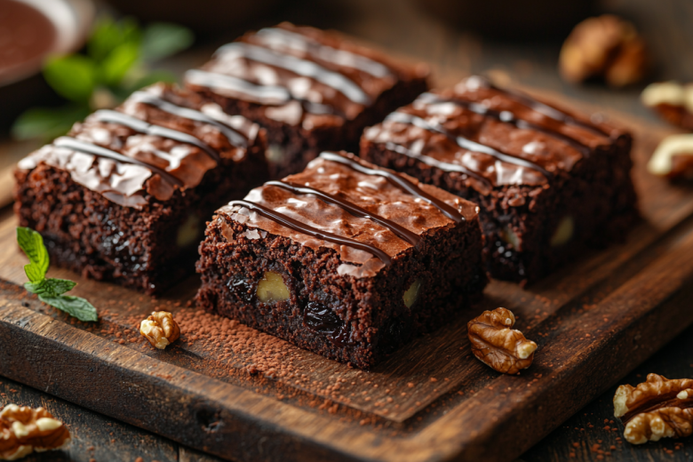 Для приготовления вам понадобится: 180 г творога, 30 г темного шоколада, 1 яйцо, 20 г какао, 50 г чернослива и 40 г грецких орехов. Растопите шоколад со сливочным маслом, добавьте яйцо, творог и йогурт. Чернослив нарежьте кусочками, орехи порубите и добавьте в тесто вместе с какао. Выложите массу в форму и выпекайте при 180 °C 30 минут.