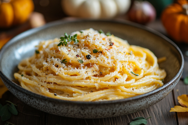 Для приготовления потребуется: 400 г пасты, 300 г тыквы, 100 г сыра, 2 зубчика чеснока, 100 мл сливок, орегано, соль, перец. Тыкву нарезать кубиками, запечь до мягкости. Приготовить пасту. Размять тыкву в пюре, добавить чеснок, специи, сливки. Смешать с пастой, посыпать сыром. Ключевой секрет — запекание тыквы вместо варки, что позволяет сохранить ее насыщенный вкус и аромат, избегая водянистости соуса. Подавать сразу, украсив зеленью.