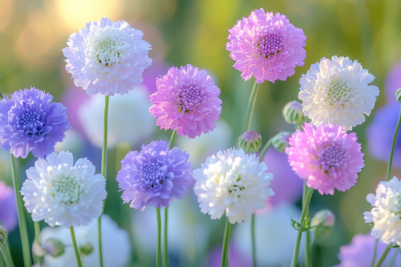 Скабиоза — это не просто цветок, а настоящее кружевное чудо! Её пушистые, похожие на подушечки для булавок соцветия нежных оттенков — от белоснежного до тёмно-лилового — качаются на тонких стебельках, наполняя сад лёгкостью и воздушностью. А какой у неё характер — настоящая степная труженица!