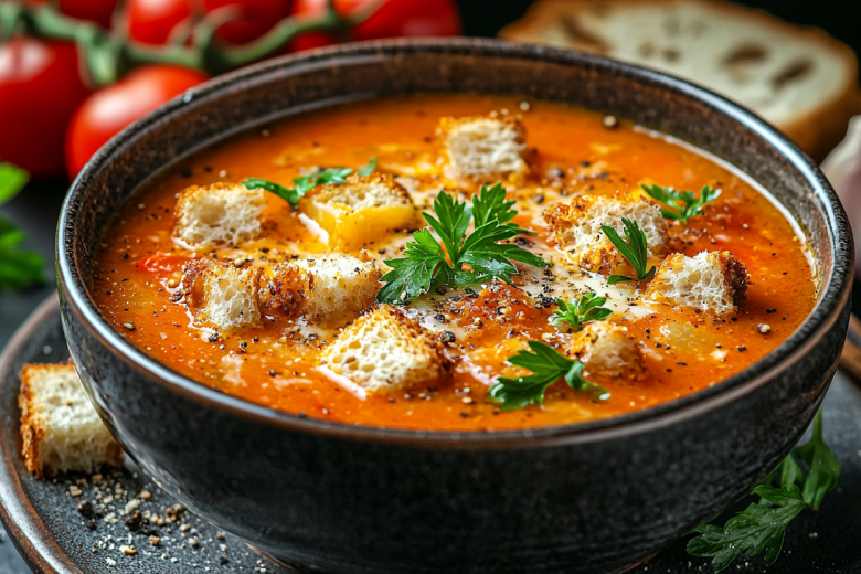 Томатный суп-пюре с брынзой и ржаными гренками — это воплощение уюта и гармонии вкусов. Нежная кремовая текстура с яркой кислинкой томатов, пикантной солоноватостью брынзы и хрустом ароматных гренок превращает обычный обед в маленький праздник. Этот суп согреет в холодный день и поразит гостей своим насыщенным вкусом и профессиональным видом, хотя готовится невероятно просто.