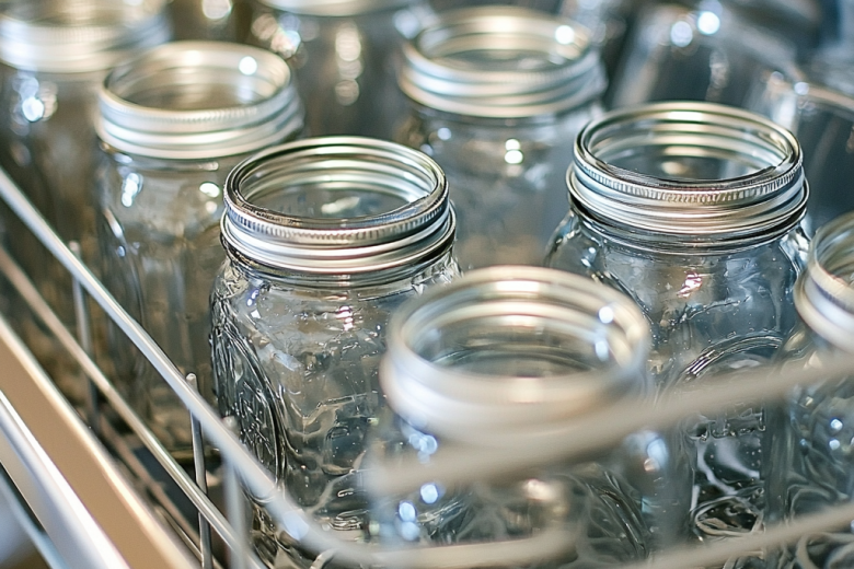 Посудомойка справится со стерилизацией быстро и безопасно. Просто установите чистые банки горлышком вниз или под углом, выберите самый горячий и длительный режим без моющего средства. В конце процесса поставьте программу «Экстра-сушка» или «Горячая сушка».