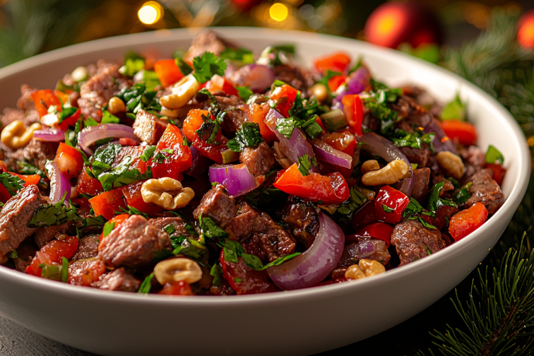 Когда надоело все майонезное и тяжело: грузинский салат «Тбилиси» — яркий акцент праздничного стола. Пикантный, сытный и очень ароматный салат, в котором нежная отварная говядина сочетается с хрустящими овощами, орехами и знаменитыми грузинскими специями. Идеальный выбор для тех, кто ищет альтернативу традиционным майонезным салатам.
