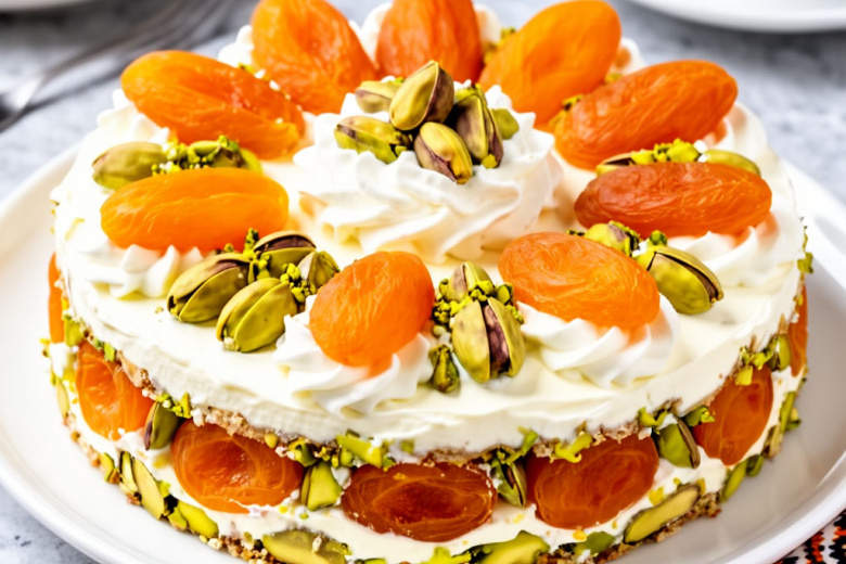 Беру готовые бисквитные коржи, нежную курагу и ароматные фисташки — и собираю торт «Сказка Востока» без выпечки всего за полчаса. Это гениально простое и невероятно вкусное блюдо, идеальное для праздничного стола или уютного чаепития. Его необычность в том, что из доступных продуктов получается изысканный десерт с ярким восточным колоритом, а готовые коржи и нежный заварной крем творят настоящую магию. Получается обалденная вкуснятина: пропитанные ароматным кремом бисквитные слои, сочные кусочки кураги и хрустящие фисташки создают неповторимое сочетание текстур и вкусов. Торт настолько нежный и тающий во рту, что напоминает лучшие восточные сладости.